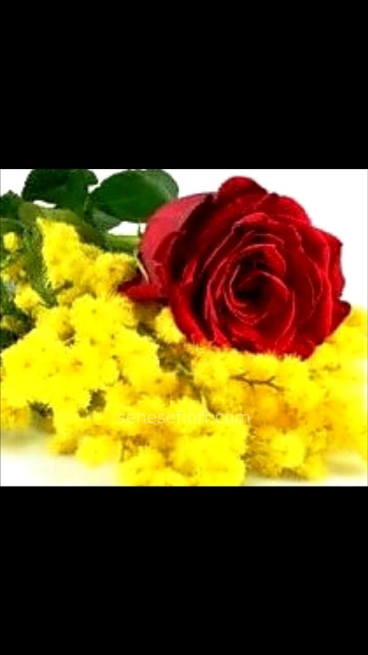 1 Rosa rossa colombiana e Mimose di San Remo