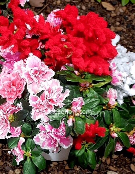 Le azalee si presentano in chiome compatte, foglie lanceolate di colore verde lucente con masse di fiori dai colori vivaci con le sfumature del bianco, rosa, rosso, lilla, viola ed alcune bicolori. Le specie coltivate principalmente sono: R. simsii, R. obtusum, gruppo Kurume e tutti negli innumerevoli ibridi e cultivar ottenuti nel tempo.