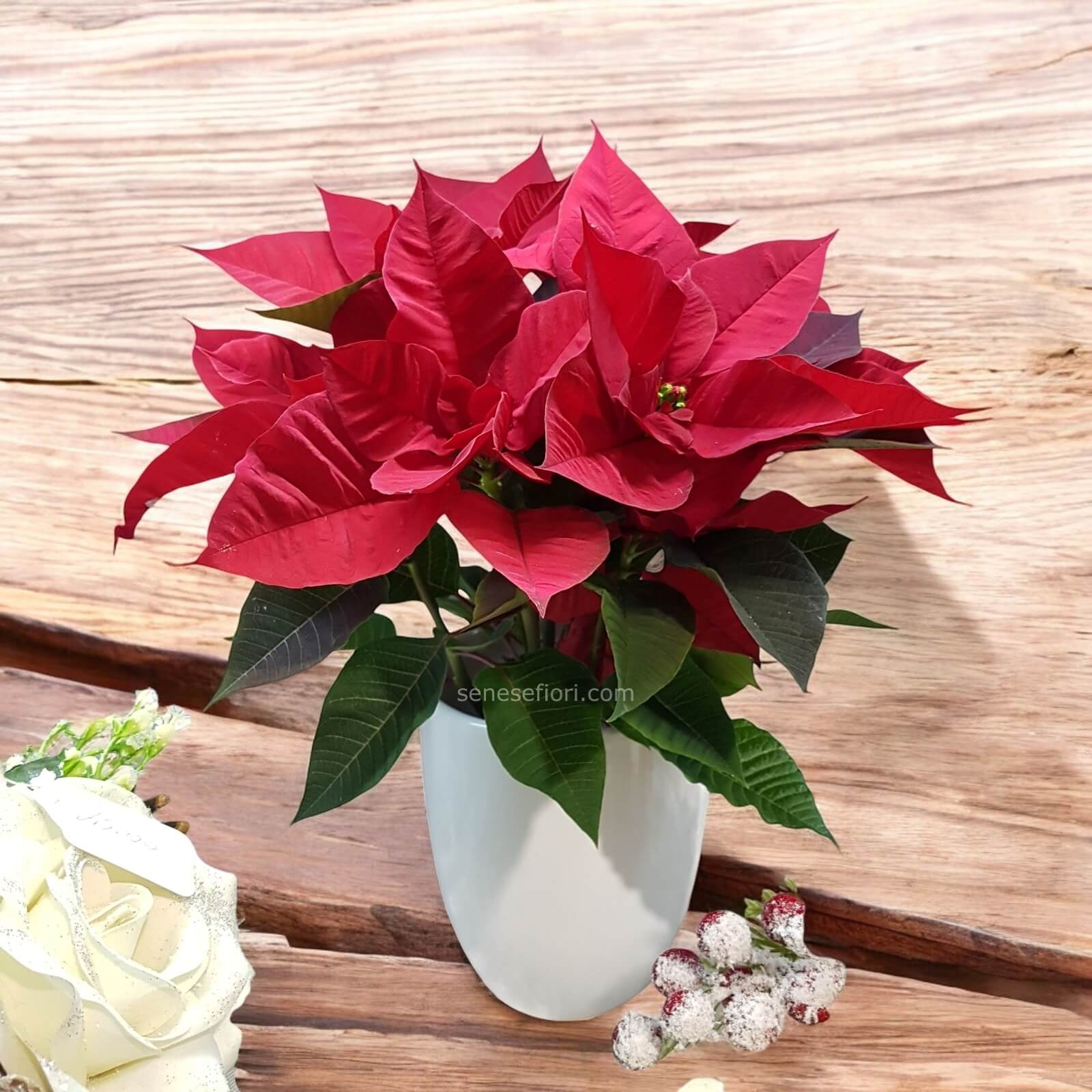 Nella realizzazione dell´omaggio ci impegniamo ad utilizzare fiori e piante di qualità e faremo tutto il possibile per rispecchiare il prodotto scelto quanto a forma, contenuti e colori. Sono comunque permesse sostituzioni di uno o più elementi per difficoltà di reperibilità sul mercato e deperibilità del prodotto. Tali sostituzioni si intendono accettate dal cliente ordinante a condizione che il prodotto offra almeno lo stesso rapporto qualità/prezzo. Puoi sempre contattarci per concordare quanto ritieni necessario. consegna a domicilio napoli stelle natalizie