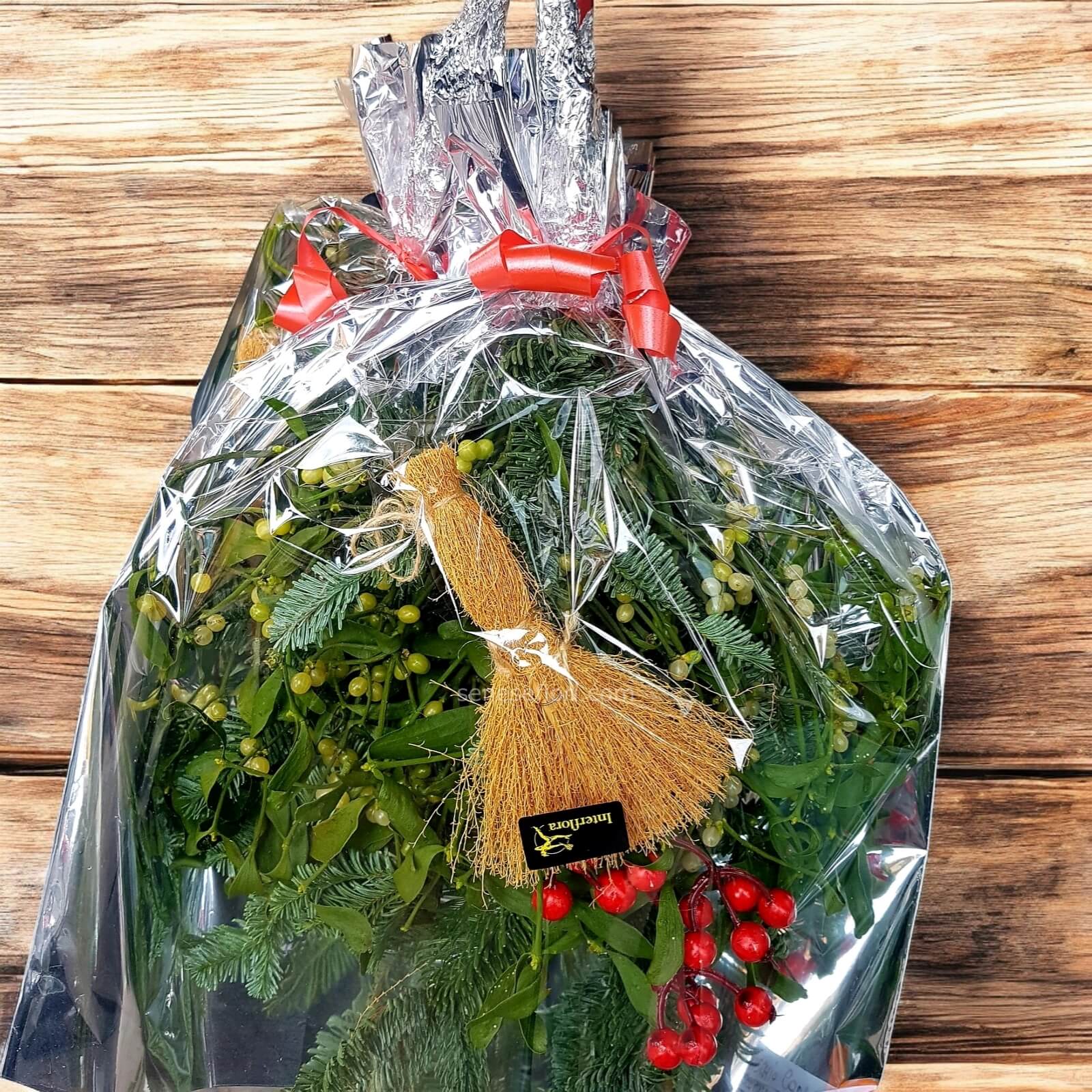 vischio portafortuna con scopina scacciaguai e decorazioni natalizie